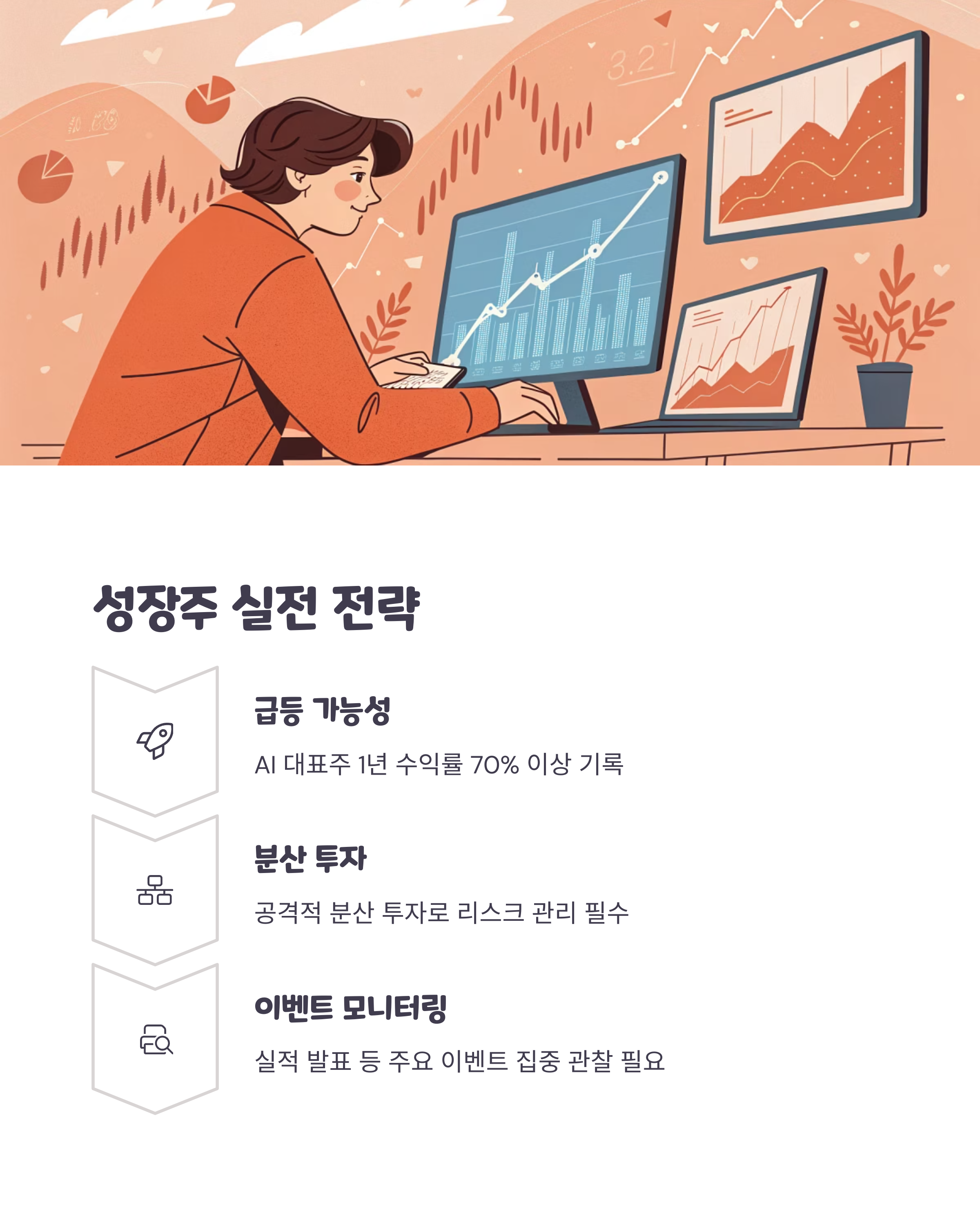 성장주는 단기적으로는 변동성이 크지만 성공적인 투자는 수익률이 상상 이상으로 확대됩니다. 예를 들어, 아마존은 상장 이후 약 1,500배 상승했고 테슬라 또한 기술력과 브랜드 가치로 큰 성장을 보여주었습니다. 젊고 투자 기간이 긴 투자자라면, 성장주를 통해 자산을 빠르게 증대시킬 수 있습니다. "높은 리스크를 감내할 수 있는 이들에게 어울리는 전략"입니다. 🚀