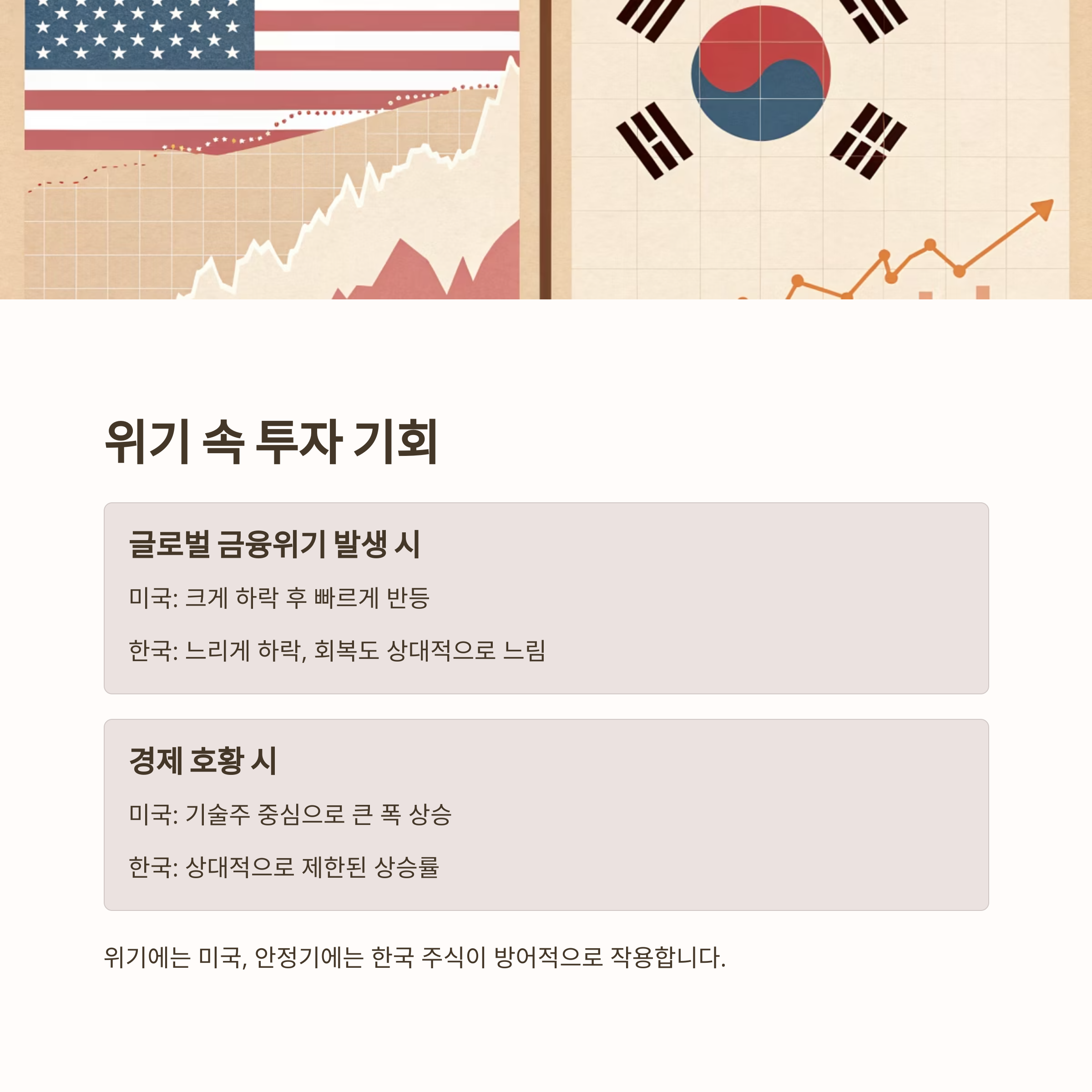 | 산업 분산 | 미국은 기술·헬스케어 중심, 한국은 반도체·제조업 중심 |