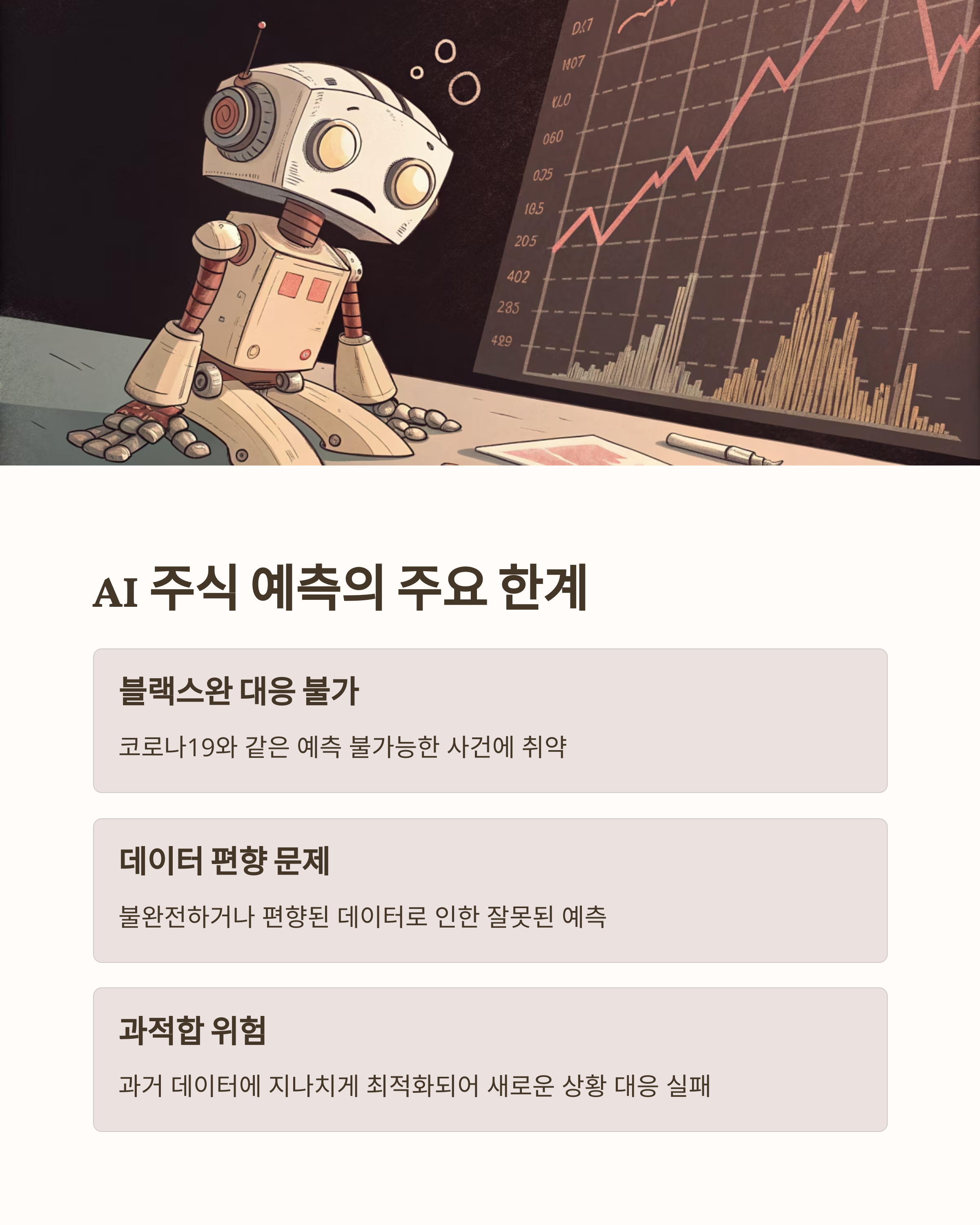 하지만, 주식 시장의 본질적 불확실성은 AI가 완전히 극복하기 어렵다는 점도 잊어서는 안 됩니다.